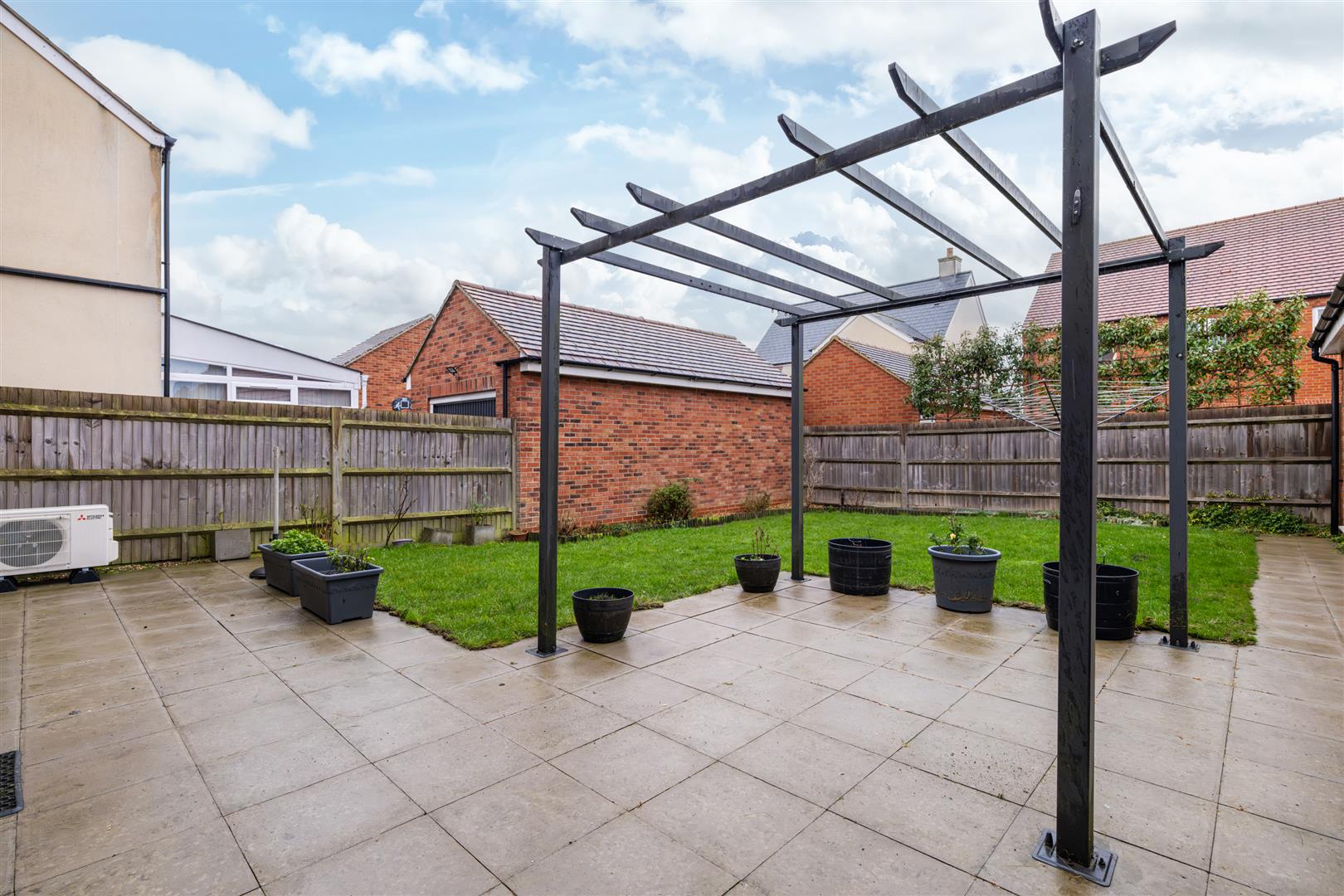 To the rear, a sizeable and well-maintained garden provides an excellent outdoor space for families and entertaining, with direct access to the single garage. The property also boasts a private driveway with parking for two vehicles, as well as an EV charging point.